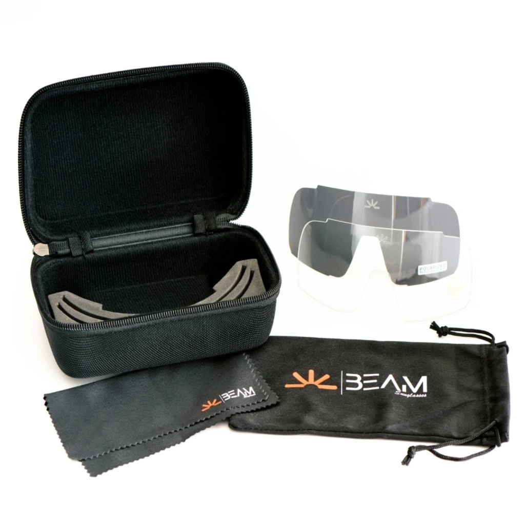 Naše sluneční brýle SKY jsou bestsellerem řady BEAM díky svému modernímu designu, kvalitním materiálům a nízké hmotnosti (28g). O zbytek se stará rozsáhlé příslušenství. Brýle se pyšní opravdu skvělou ergonomií a proto jsou vhodné, ať už na jakýkoliv sport a nebo jen tak na městskou procházku. Nosník a nožičky brýlí jsou z pogumovaného materiálu, tím pádem je zaručeno perfektivní držení brýlí na vašem obličeji. Brýle skvěle chrání před větrem, sluncem a případně i vodou.
